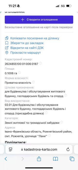 | Земельна ділянка: |