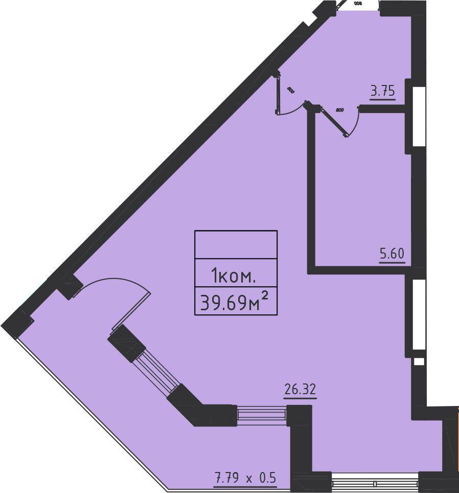 — Общая площадь — 39 м²