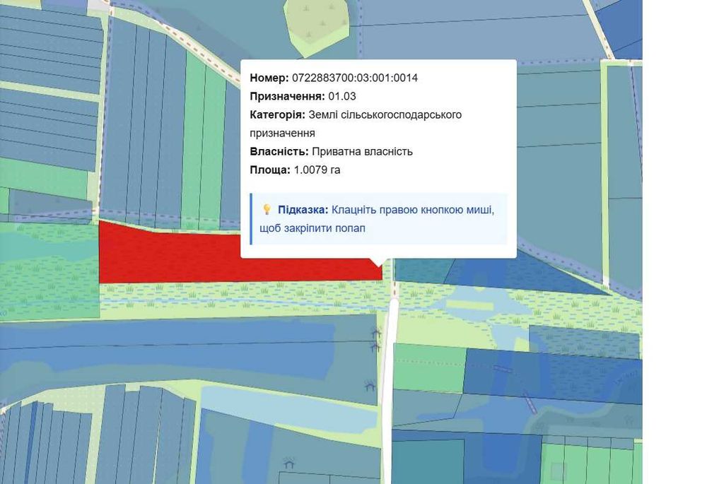 Земельна ділянка; Продаж земельної ділянки площею 1.01га, кадастровий номер 0722883700:03:001:0014, цільове призначення для ведення ОСГ, згідно генплану передбачено землі комерційного призначення. Ділянка розташована поблизу ЖК Західний Олімп.
