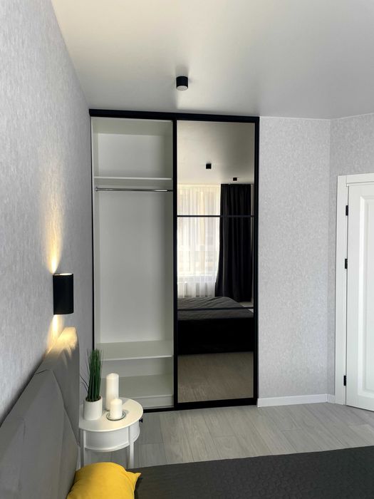 Великий та просторий гардероб в спальні, функціонально та зручно.