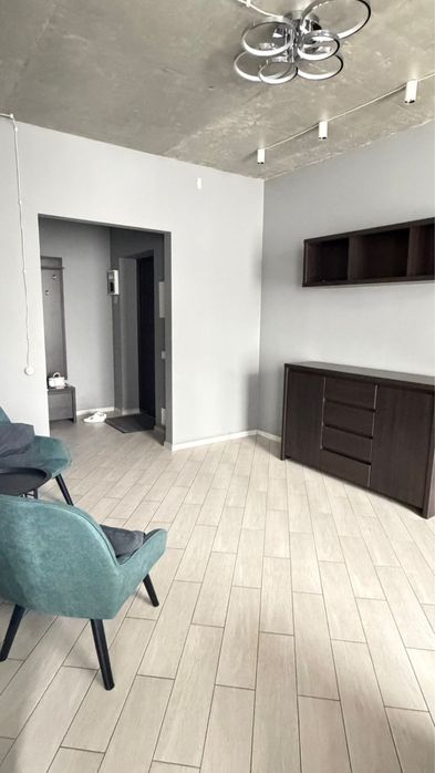 Велика кухня обʼєднана із вітальнею, гардероба кімната, санвузол, великий коридор, окрема спальня із балконом.