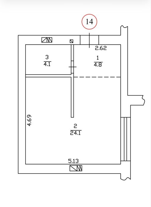 Загальна площа квартири: 33 кв.м.