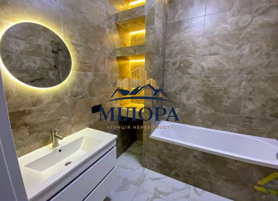 Усередині виконано якісний євроремонт, житло повністю мебльоване та оснащене необхідною побутовою технікою: холодильником, варильною панеллю, духовою шафою, пральною та посудомийною машинами. У спальні додатково встановлять містку розпашну шафу. Також передбачена окрема гардеробна кімната, де розміщені бойлер на 80 літрів, котел для теплої підлоги та пральна машина.