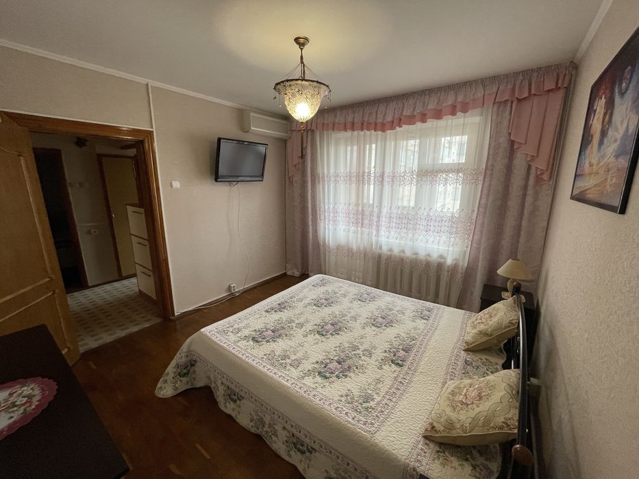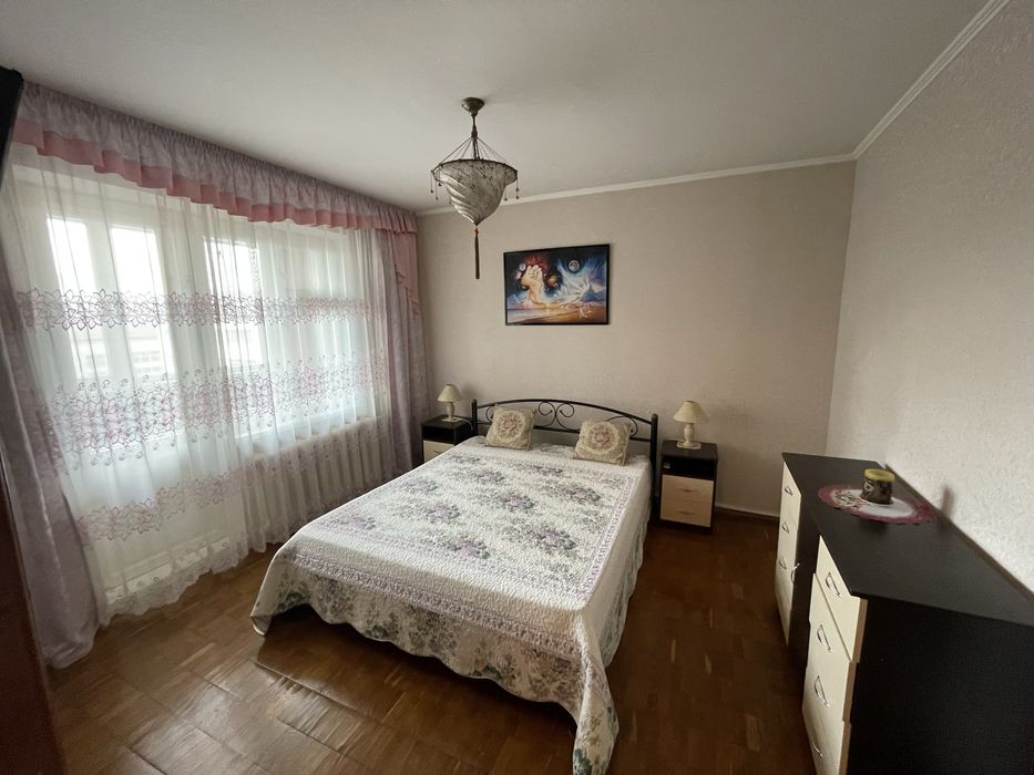 Квартира облаштована усіма необхідними меблями (двохспальне ліжко, розкладний диван, шкаф, гардеробна) та технікою для комфортного життя - кондиціонер, телевізор, пральна машина, холодильник, електроплита, духовка, витяжка, електрочайник, праска, бойлер на 50 літрів. Санвузол роздільний. Великий хол (9 м2) для комфортного відпочинку та маленький коридор поруч можуть використовуватися під час повітряних тривог, бо мають 4 стіни. Дві великі засклені лоджії (кожна по 6 м2), кухня (8,5 м2), 2 кімнати (13 м2 и 14 м2), коридор (5 м2), гардеробна (4 м2). Покриття - паркетна дошка, ковролін.