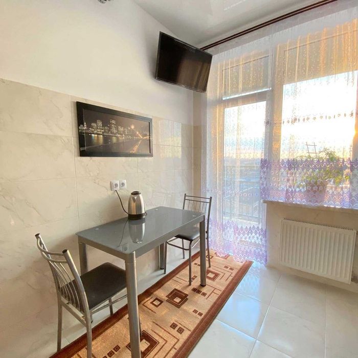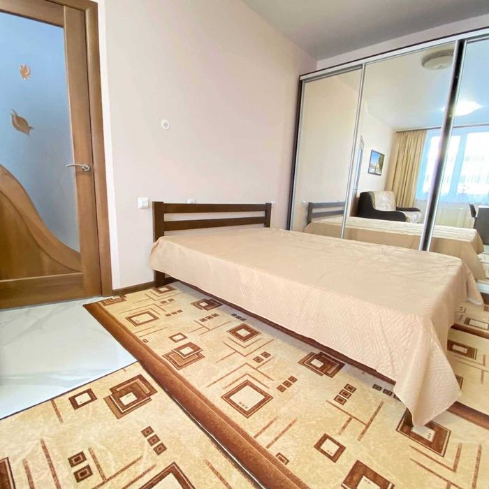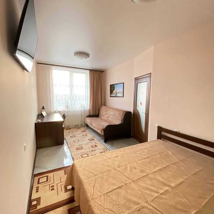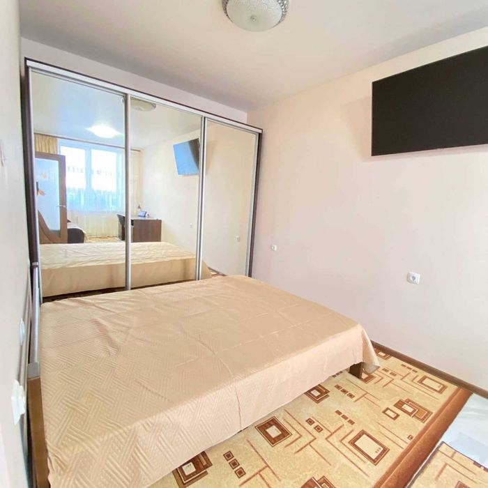 Шикарный евроремонт. Зона спальни: телевизор с диагональю 50 дюймов, скоростной интернет, двуспальная кровать, шкаф-купе.