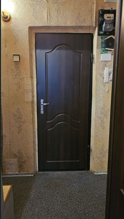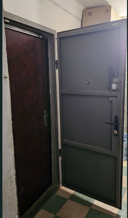 Металлическая входная дверь с МДФ и в тамбуре тоже металлическая дверь.
