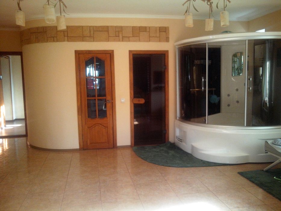 в одной половине большая зона отдыха с оранжереей, финская сауна,