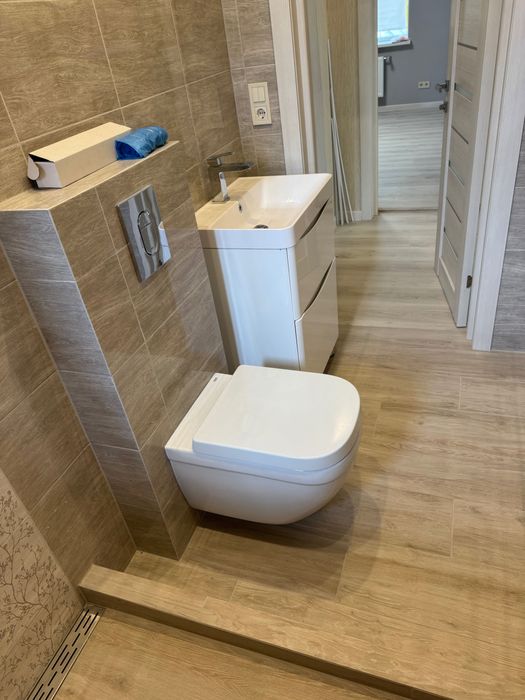 Тепла водяна підлога у вітальні з каміном, спальні та санвузлу, підлога-ламінат водонепроникний та плитка