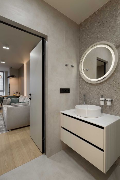 В квартирі все продумано для комфорту мінімалізм, функціональність і відчуття особистого простору, яке так цінується у сучасному житлі.