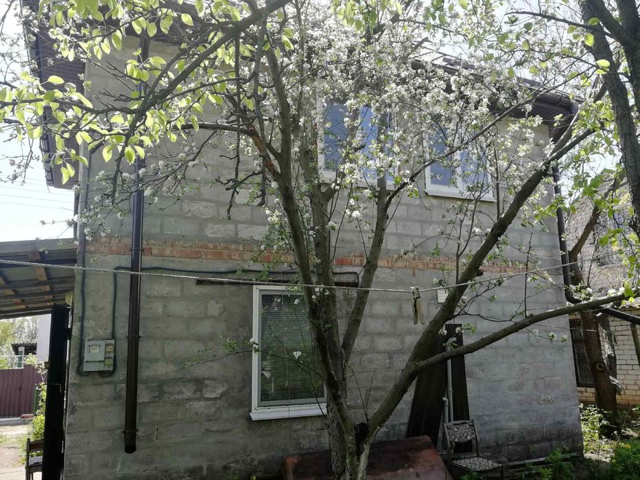 Двоповерховий садовий будинок площею 69,5 кв.м , побудований із шлакоблоку, перекриття залізобетонні, покрівля із металочерепиці, вікна металопластикові. В будинку три кімнати, санвузол (умивальник, душовий бокс, унітаз, бойлер) та невеликий гараж з погрібом. Опалення пічне, є груба. Сам будинок дуже світлий та комфортний, для відпочинку саме те, що треба !