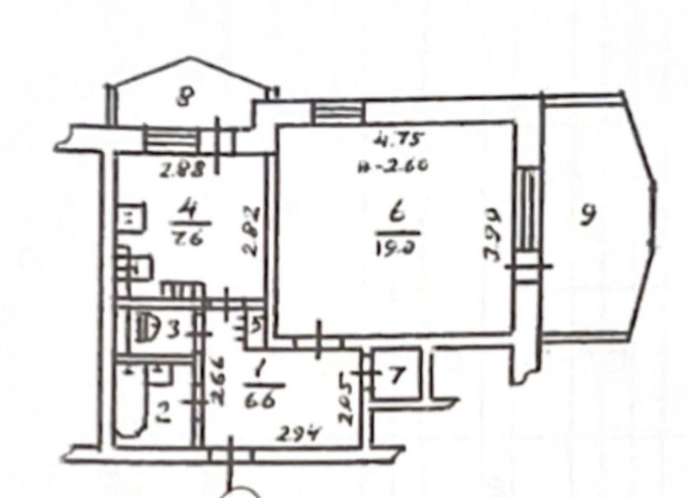 Площадь квартиры 43 м² , комната 19, кухня 8 кв. м