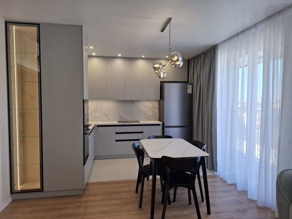 • Простір: велика кухня-вітальня (30.5 м²), дитяча (13 м²), спальня (18 м²), кабінет для роботи (13 м²), повністю мебльовані, просторий передпокій (10 м²) та гардеробна кімната.
