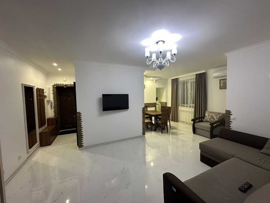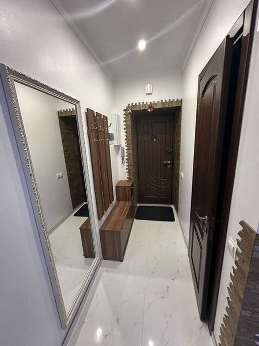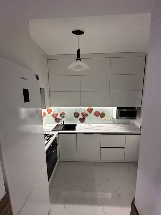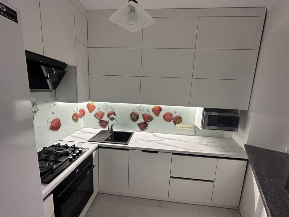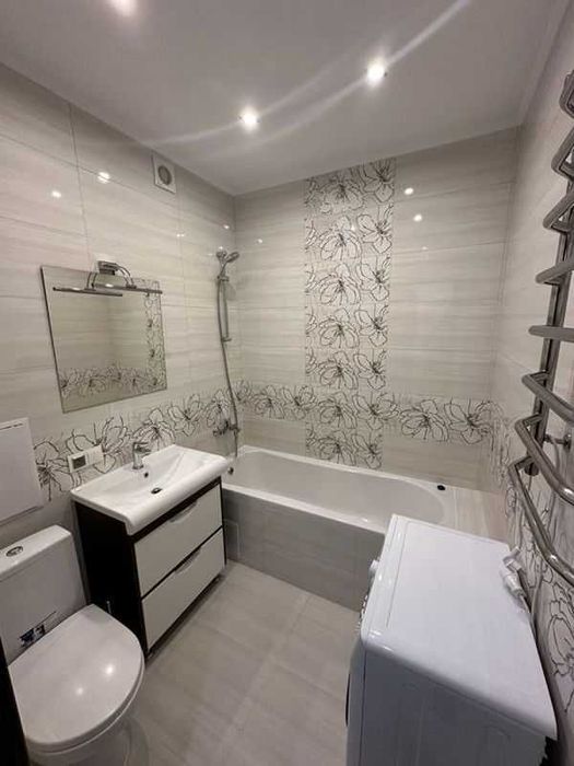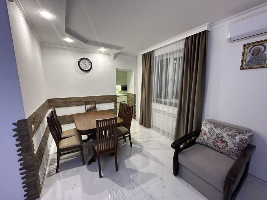 Укомплектована меблями та побутовою технікою: посудомийна машина, пральна машина, тепла підлога, кондиціонер, опалення (дахова котельня, економне), холодильник, мікрохвильова піч, засклений балкон.