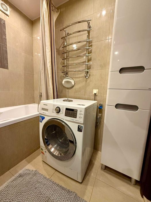 Окремий санвузол та ванна. Квартира повністю мебельована для комфортного проживання. В квартирі є вся необхідна побутова техніка, в тому числі посудомийна машина. Все робилось для себе, здаю в оренду тому що проживаю в іншому місці.