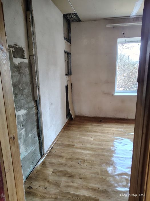 Цегла, 2 кімнати, веранда, маленька прибудова під ванну. Води немає. Е колодязь біля будинку, спільного призначення.