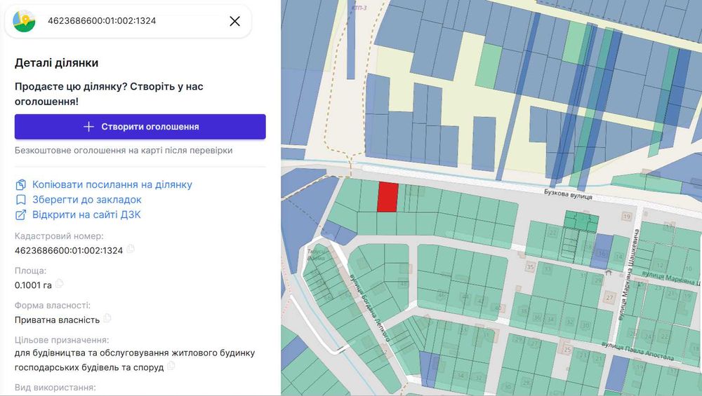 | Земельна ділянка: |