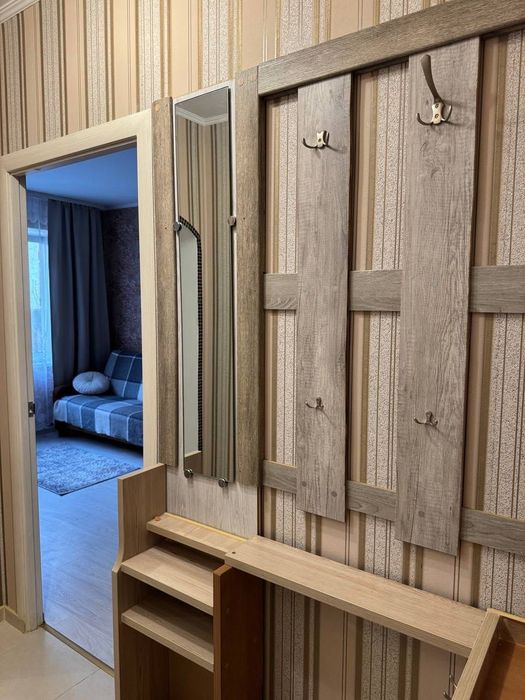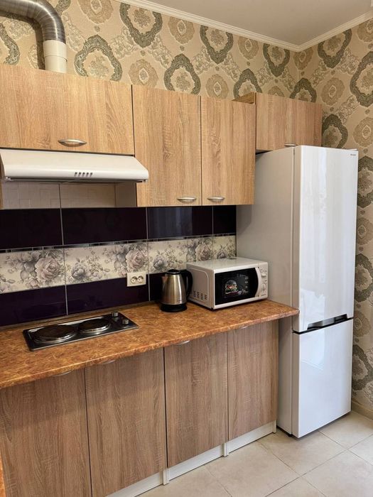 Простір продуманий для комфортного проживання: є засклений балкон, зручні спальні місця - ліжко та диван, містка шафа-купе, а також вся необхідна техніка та побутові речі. Кухня обладнана варочною поверхнею, мікрохвильовою піччю, чайником, витяжкою і холодильником, у квартирі також є пральна машина, бойлер, праска, сушкарка для одягу.