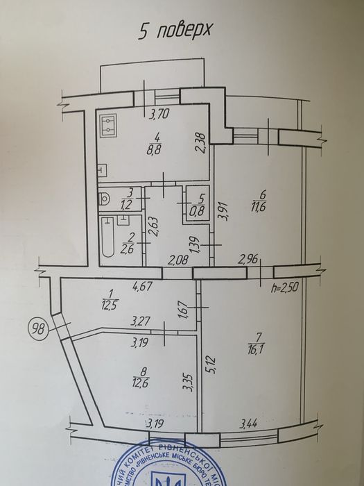 площею 12,6 та 16,1 кв.м. Загальна площа 55,5 кв.м
