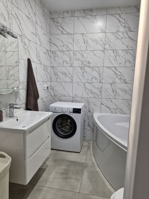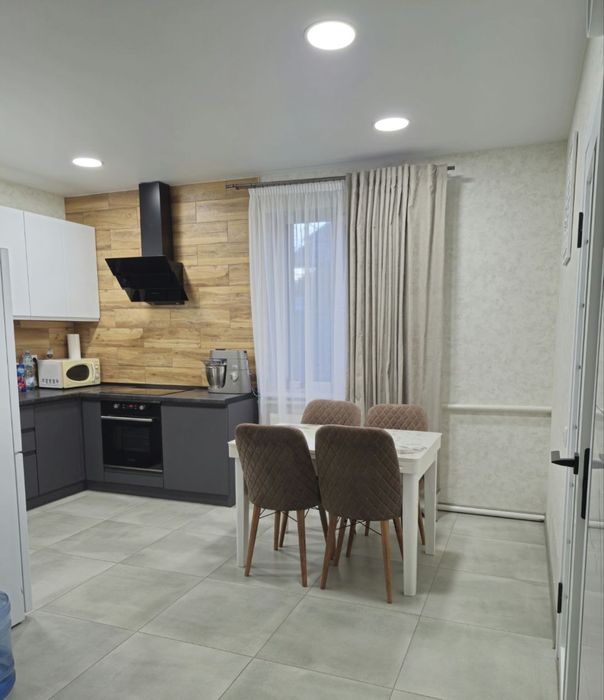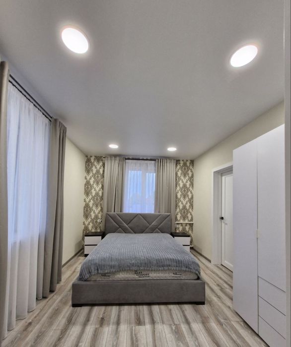 3 кімнати, одну можна використовувати під гардеробну. Гарна нова кухня, тепла підлога, сучасна вана сумісна з туалетом.