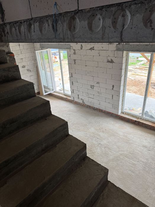 Фундамент монолітна плита, стіни газоблок 375 мм, утеплення пінопласт, вікна WDS.