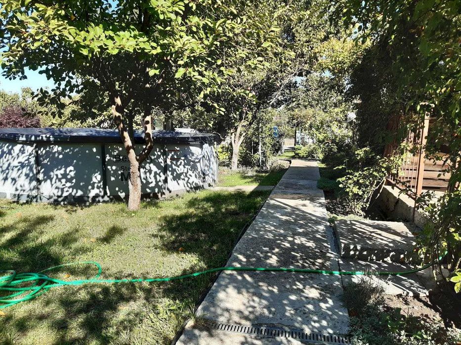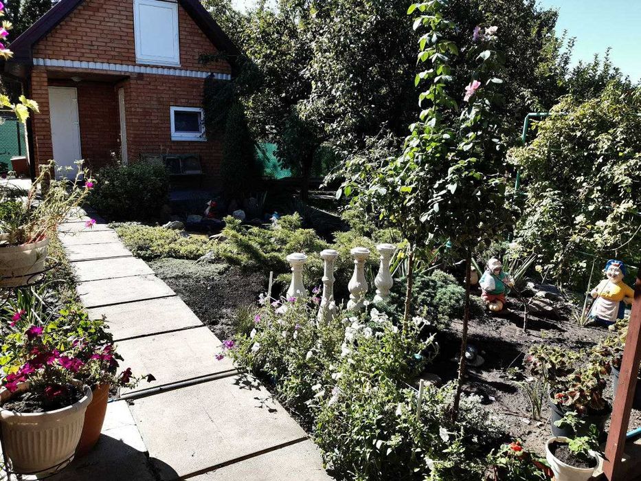 - Участок ровный, ухоженный, газонная трава, цветы, плодовые деревья, кустарники малина и виноград.