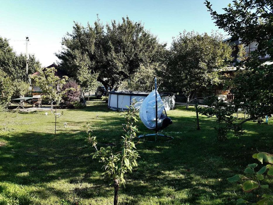 - На участке беседка на 10 человек, мангал, каркасный бассейн 5м в диаметре, качели детская двухместная, батут большой 4метра диаметр, 2 гамака и 2 лежака, песочница.