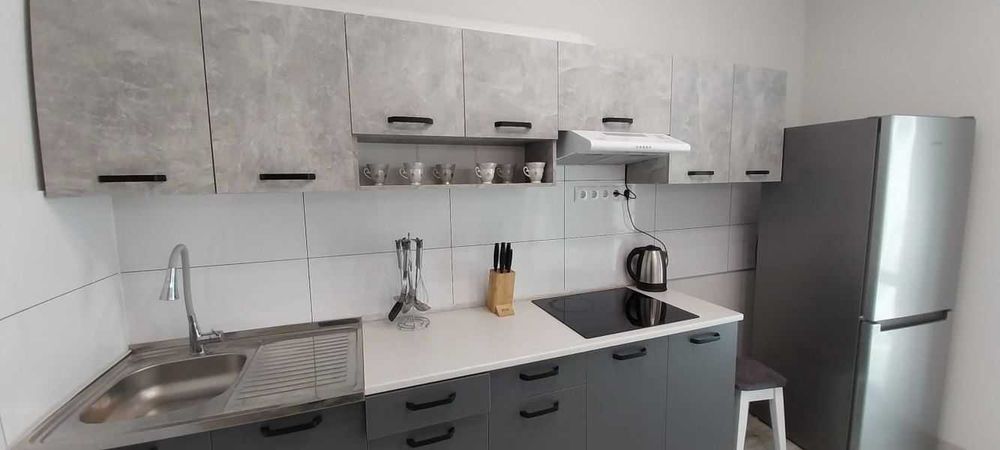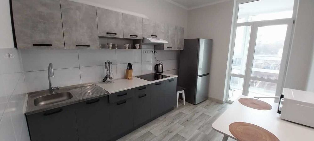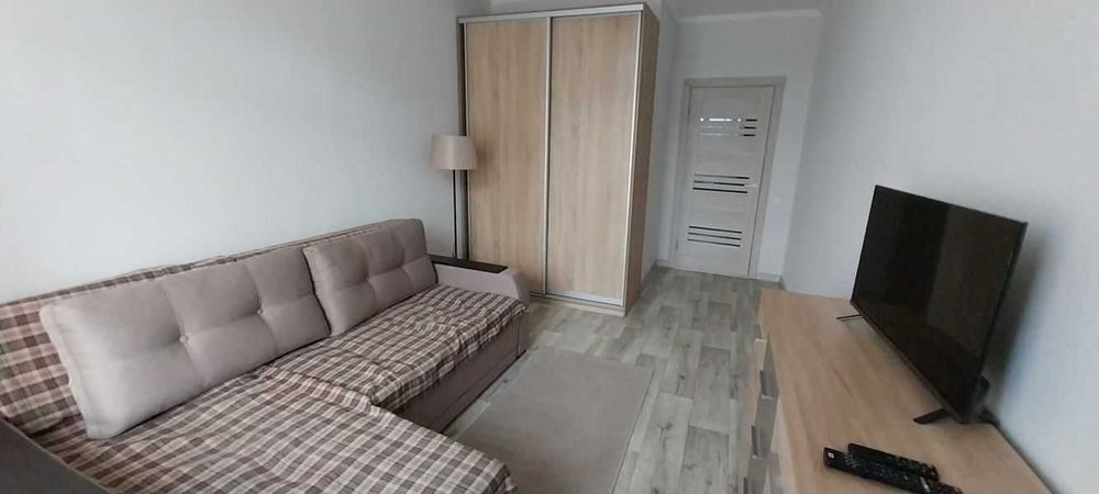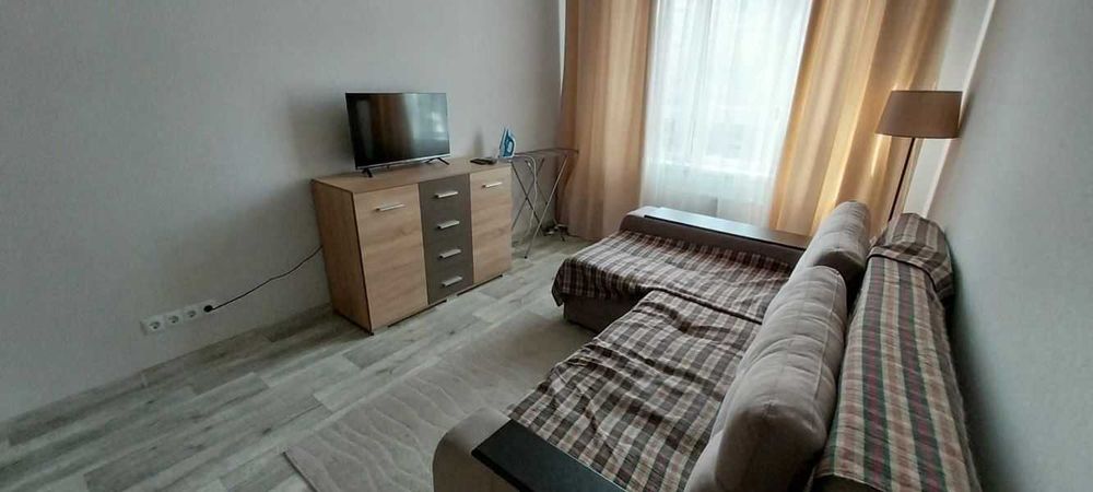 Сучасний ремонт, повністю мебльована, вся необхідна техніка: мікрохвильова піч, холодильник, варильна поверхня, бойлер, пральна машина, електрочайник, телевізор, відпарювач/праска, пилосос. Є балкон та панорамні вікна.