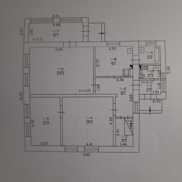 Общая площадь 92.2 м2 жилая 54.8м2 с/у раздельный