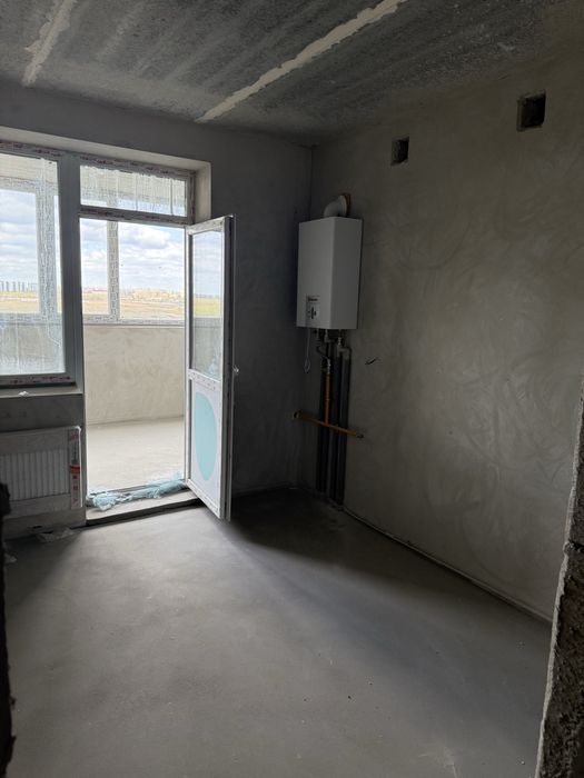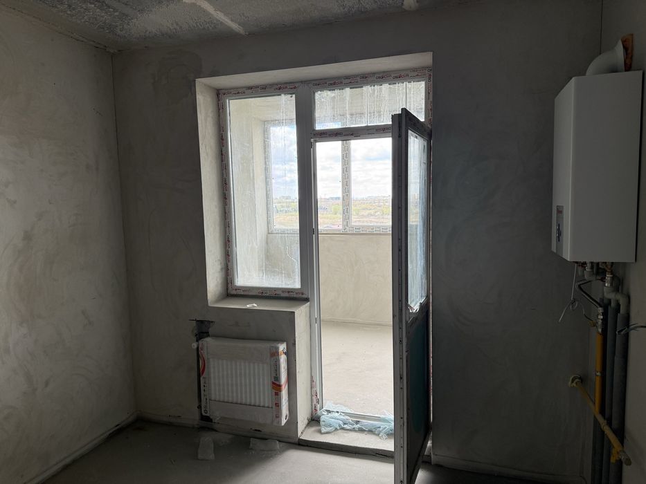 В квартирі вже зроблені стяжка та штукатурка, встановлені радіатори, двухконтурний газовий котел.