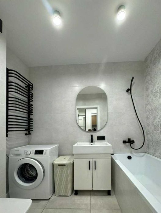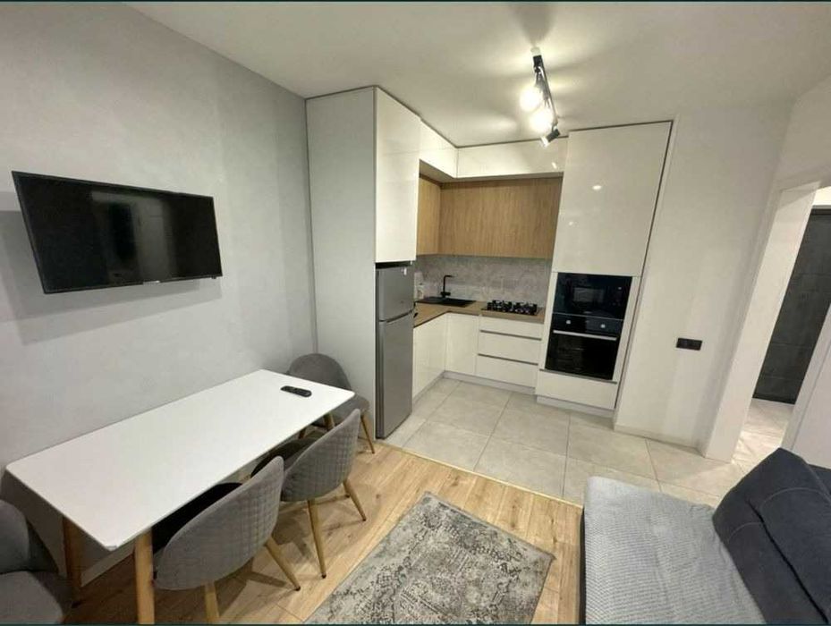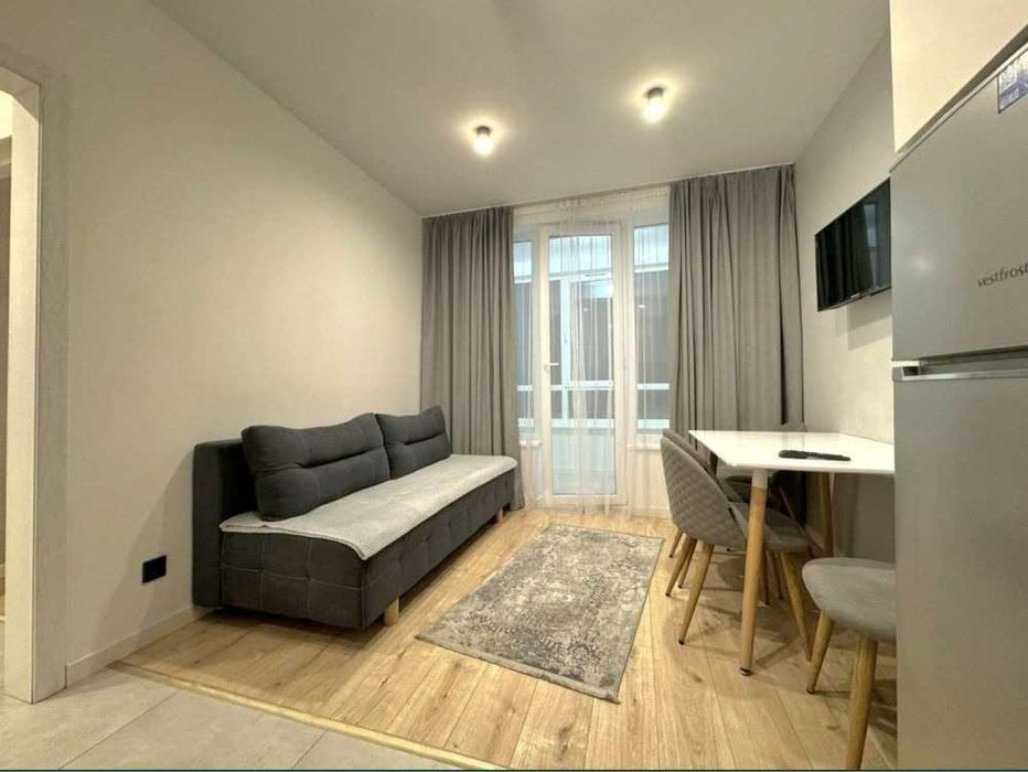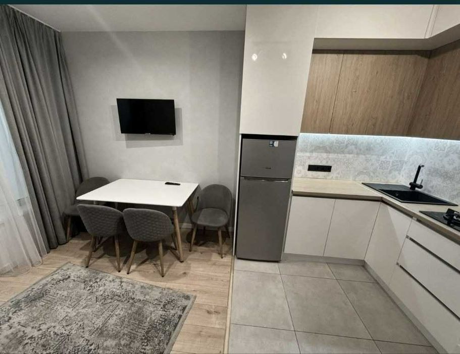 У квартирі є всі необхідні меблі та техніка: двоспальне ліжко, розкладний диван у кухні-студії, шафи-купе в коридорі та спальні, а також повний набір побутової техніки. Встановлені лічильники на всі комунікації, що робить утримання економним. Квартира у хорошому стані та повністю готова до заселення.