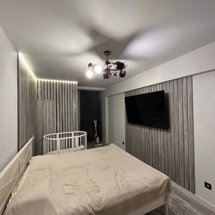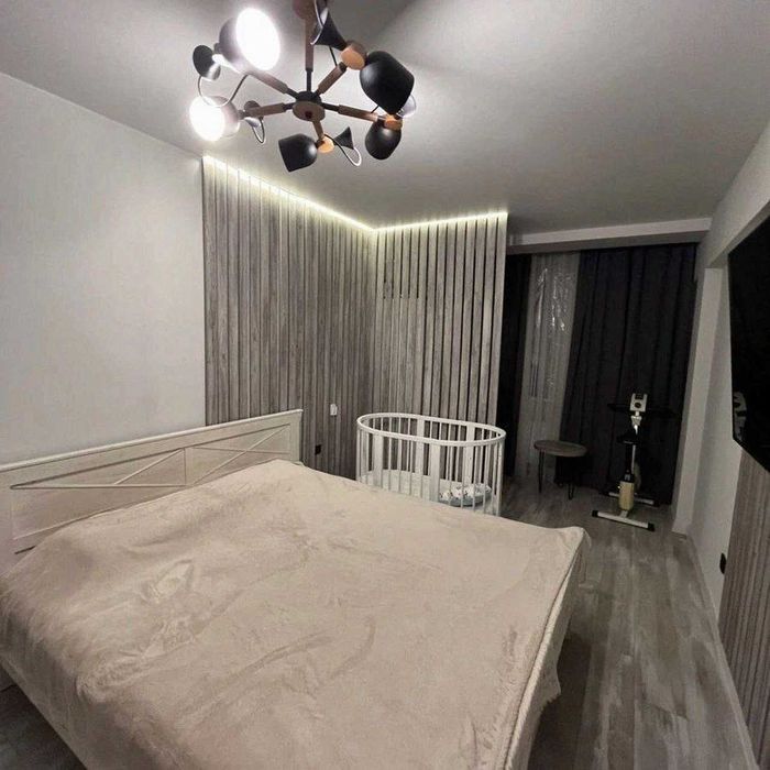 Інтер’єр виконаний у приємних холодно-теплих тонах, що створюють атмосферу затишку та комфорту. Простора спальня з великим двоспальним ліжком забезпечить повноцінний відпочинок. У квартирі є два телевізори, духова шафа, мікрохвильова піч, варильна поверхня, пральна машина. Усе продумано для зручного та комфортного проживання.