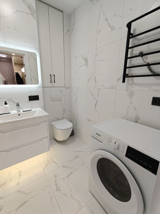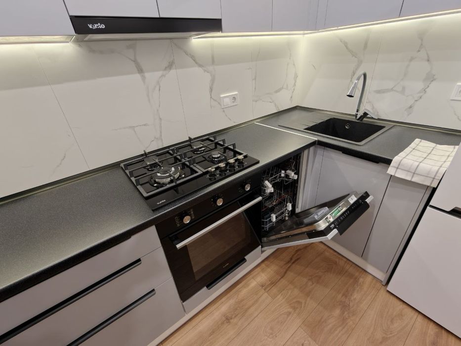 В квартирі є все необхідне для комфортного проживання, - місця для зберігання, всі меблі, нова сучасна побутова техніка, зручний санвузол з повноцінною ванною та пральною машиною, кондиціонер, телевізор, посудомийна, пральна машини.