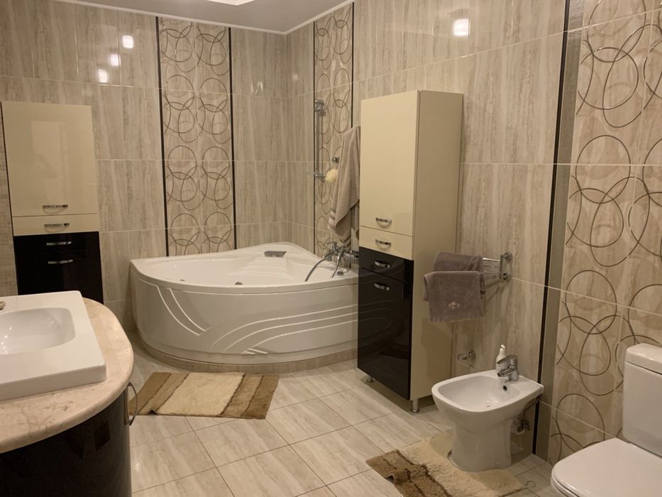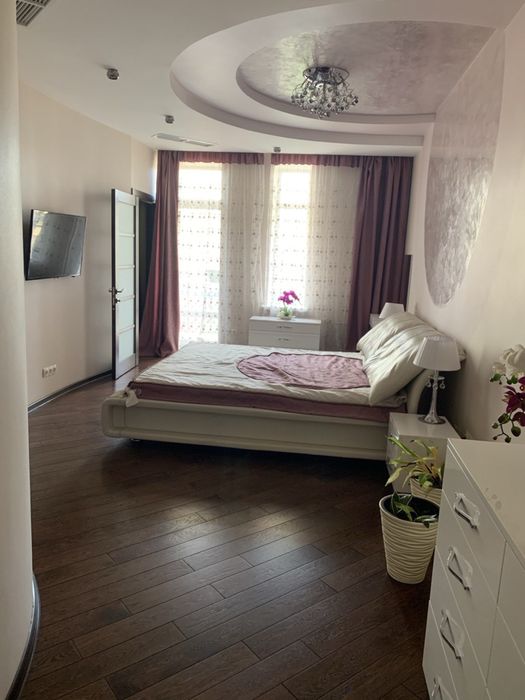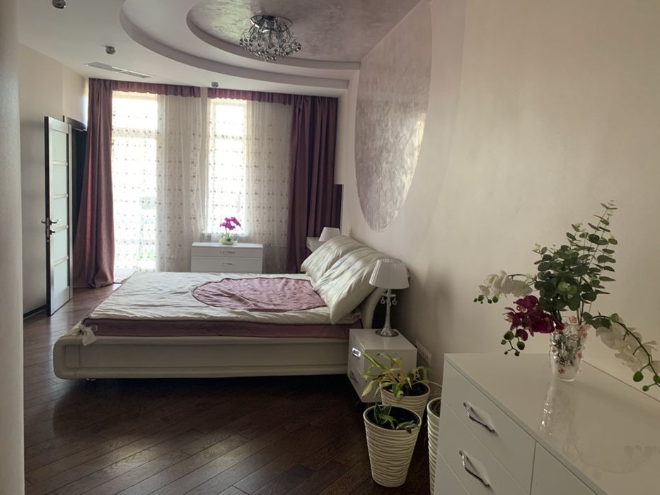 Оренда 5-кімнатноі квартири; ЖК «Чайки». Простора, світла, комфортна квартира. Середній поверх. Тепла взимку, прохолодна влітку. Вся побутова техніка, меблі, домашній кінотеатр., спліт-система. Зовнішня охорона, сигналізація, зелена територія. Поруч школа та дитсадок.