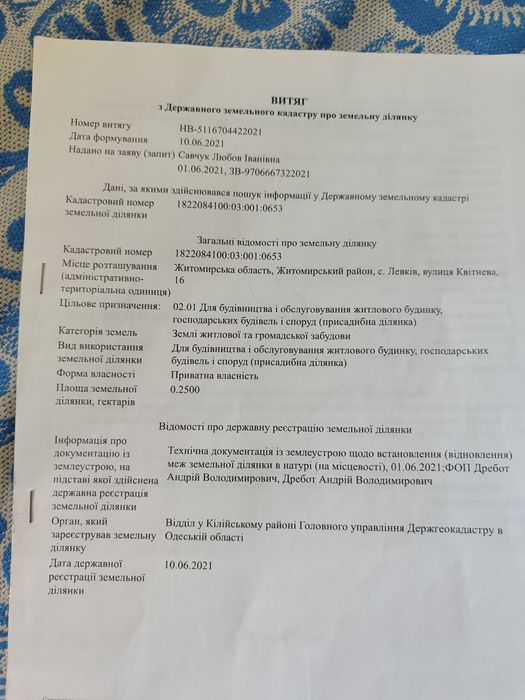 | Земельна ділянка: |
