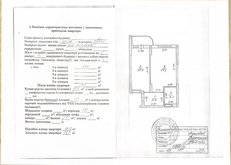 * Планування: окрема кімната, велика кухня, санвузол, коридор, балкон (планування додається), вікна виходять у двір П-будинку