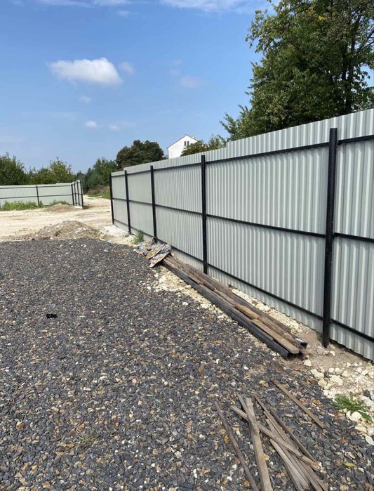 Повністю огороджена по периметру, із широкими воротами для заїзду. Ділянка прямокутної форми, вже вирівняна і підсипана. Зʼїзд з траси є. При потребі ділянку можем доукомплектувати додатково: МАФ на 20 м.кв., ангар на 150 м.кв.