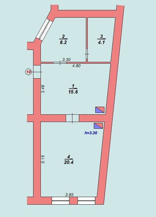 Висота стелі 3.3м