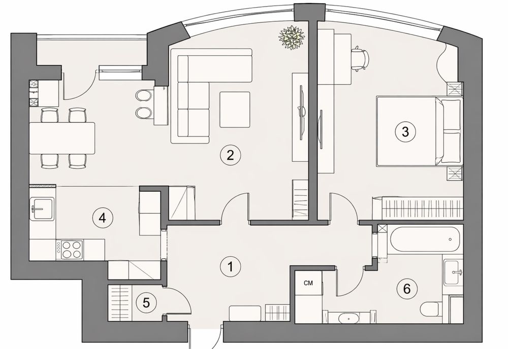 * окрему спальню з зонами для сну та відпочинку