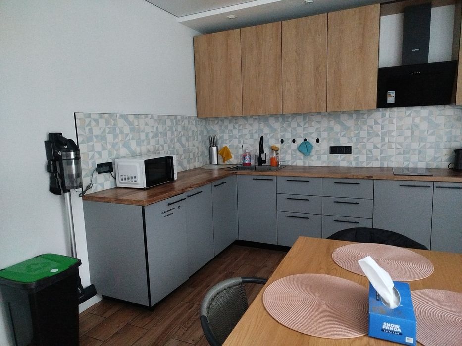 На кухні є холодильник, мікрохвильова піч, чайник,варочна (індукційна плита).