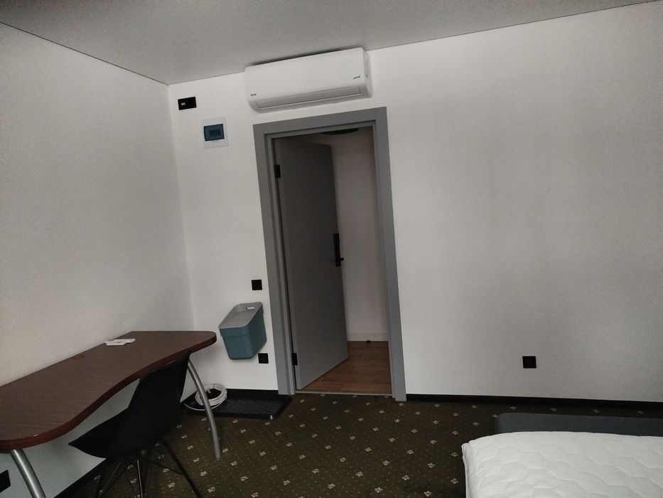 У кімнаті є диван який розкладається з ортопедичним матрацом,стіл, стільчик, вмістка шафа, кондиціонер,wi fi.