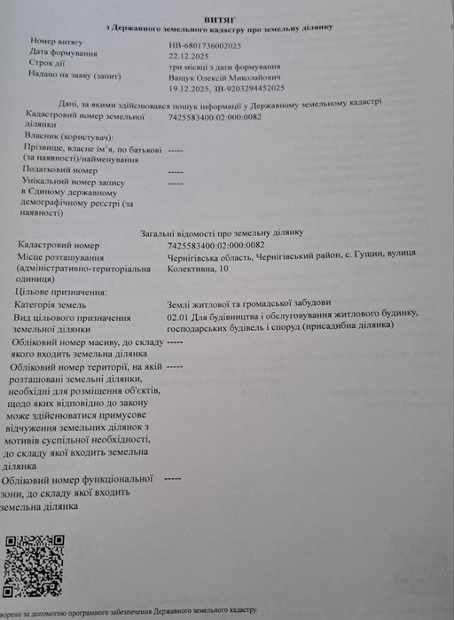 | Земельна ділянка: |