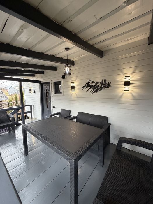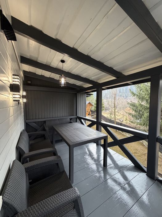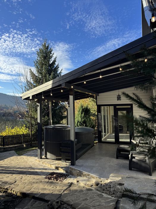 Будинок на 4 осіб з терасою до річки .Чан джакузі та сауна; Тут не треба нічого вигадувати — просто відкриваєш двері й чуєш, як тече вода. Ранкова кава на терасі, свіже повітря, тиша навколо і відчуття, що ти саме там, де потрібно.