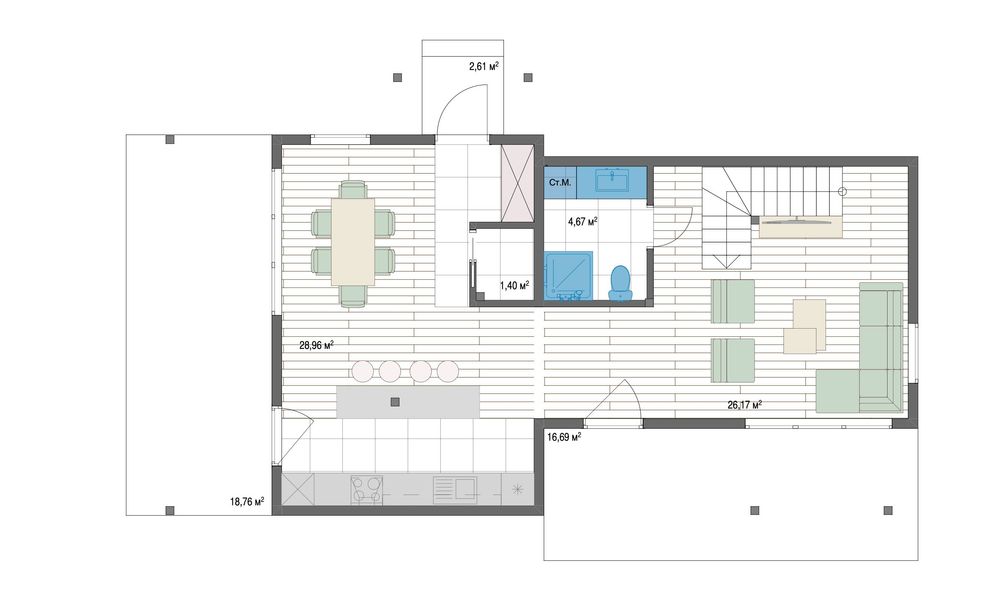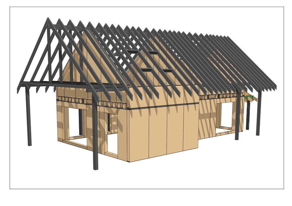 1. Стіни СІП- панелі 170мм(15мм ОСБ Egger - 140мм пінополістирол - 15мм ОСБ Egger);