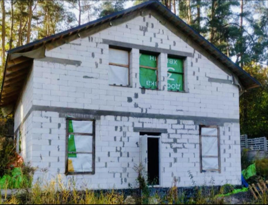 Будинок біля озера ( Характер парк) Гатне; Будинок в Гатному біля лісу та озера. Площа ділянки 0,46 га, за фактом 5 га. . Будинок стоїть на монолітній, потужній фундаментній плиті. Розмір будинку 9м/8.5м-2 поверха (153 м2), Будинок з Газоблоку з покрівлею (Металочерепиця німецької якості 0,5 мм). Будинок усередині під оздоблення. Свердловина 35м. Електрика. На ділянці сосни. Поруч озеро впорядковане в 1 хв. ходьби , зони відпочинку. Дитячий майданчик, рибалка, човни, фуд корт, пляжна зона, басейн (парк розваг Характер). Будинок будували для себе, якісно! Ви можете продовжити під свої уподобання та планування, найскладніша робота вже виконана. Всі питання пишіть, відповім!