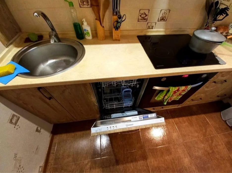 Санвузол сучасний, з душовою кабіною. У квартирі є великий засклений балкон.