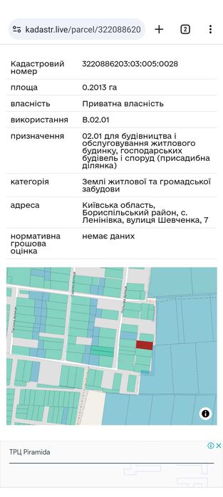 | Земельна ділянка: |