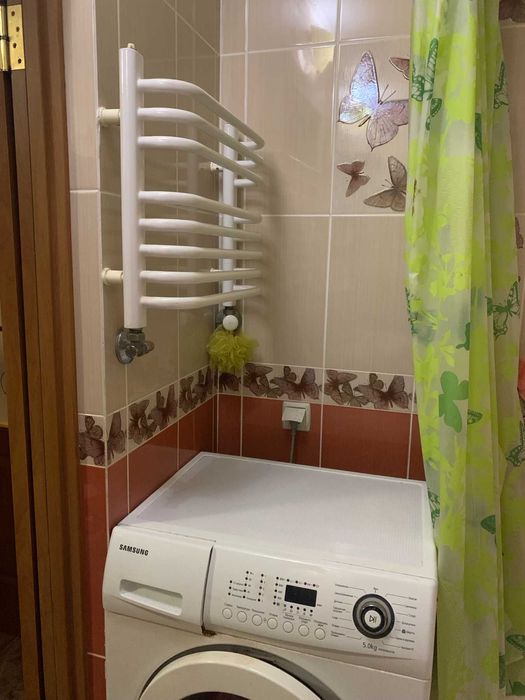 з похилою витяжкою, з пральною машиною Samsung. Є оптоволоконний інтернет.