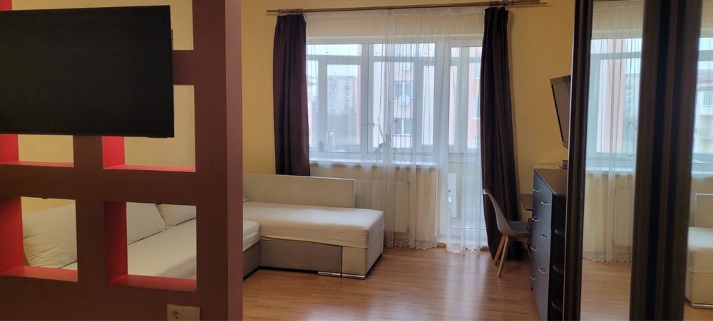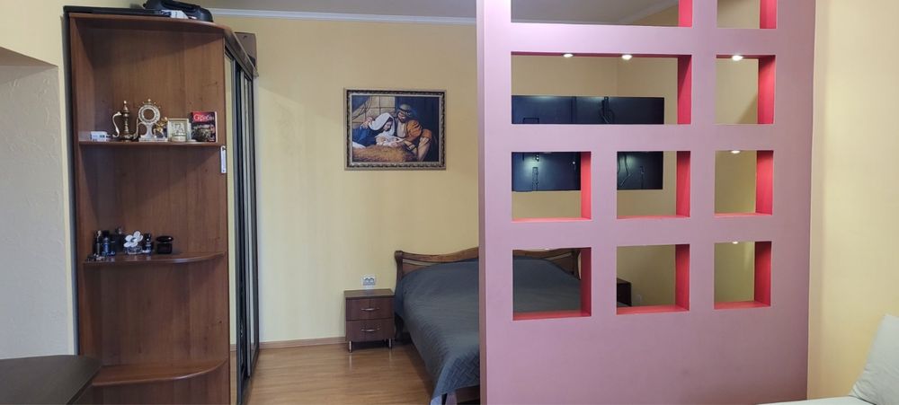 Пропонується комфортна та функціонально спланована однокімнатна квартира на 3 поверсі. Завдяки великій площі квартира має зручне зонування: окрема кухня, простора вітальня з відокремленою спальною зоною та виходом на балкон.