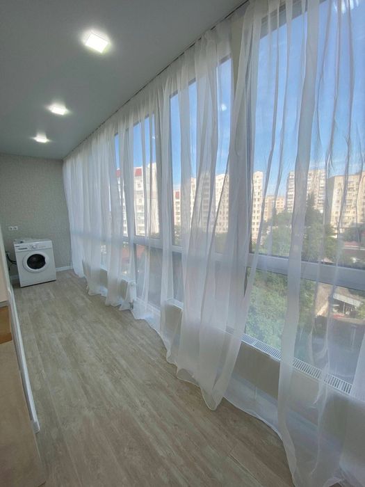В квартире выполнен качественный ремонт в приятных светлых тонах , с панорамным остеклением и индивидуальным отоплением .