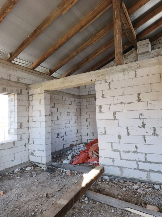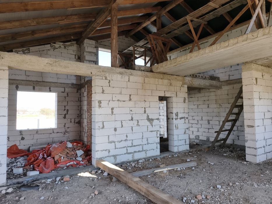 - Стан: Зведено стіни (блок 500, утеплювати не потрібно). Накрито дах металопрофілем.